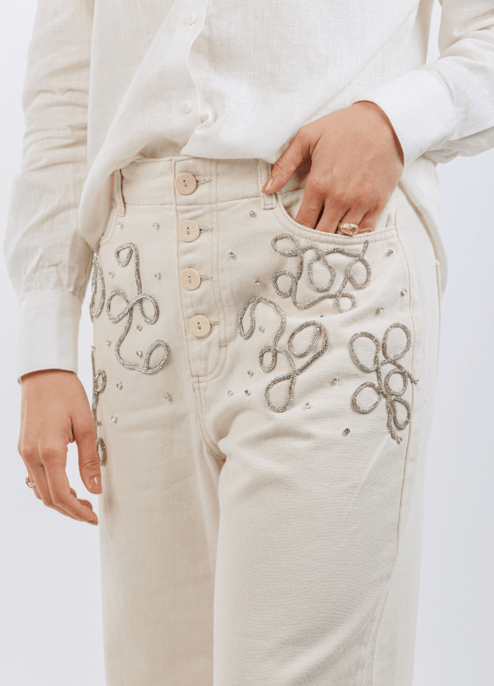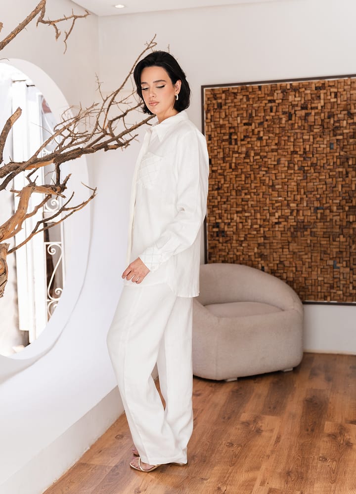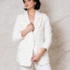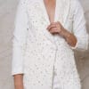 Uma verdadeira joia: o Blazer Lua é todo bordado à mão em tons perolados, unindo leveza, elegância e personalidade. Um peça chique, ousada e única, feita para quem quer um visual impecável do dia à noite.