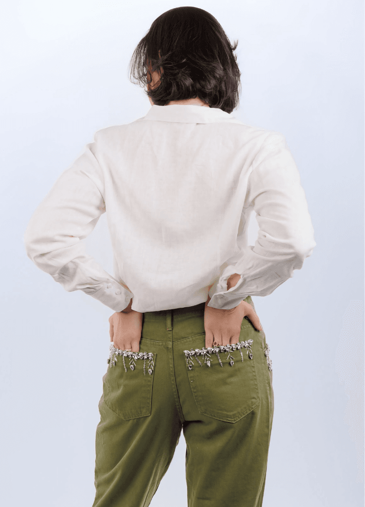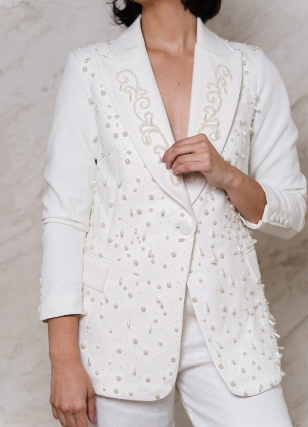 •Bordado artesanal que transforma o blazer em uma peça-statement