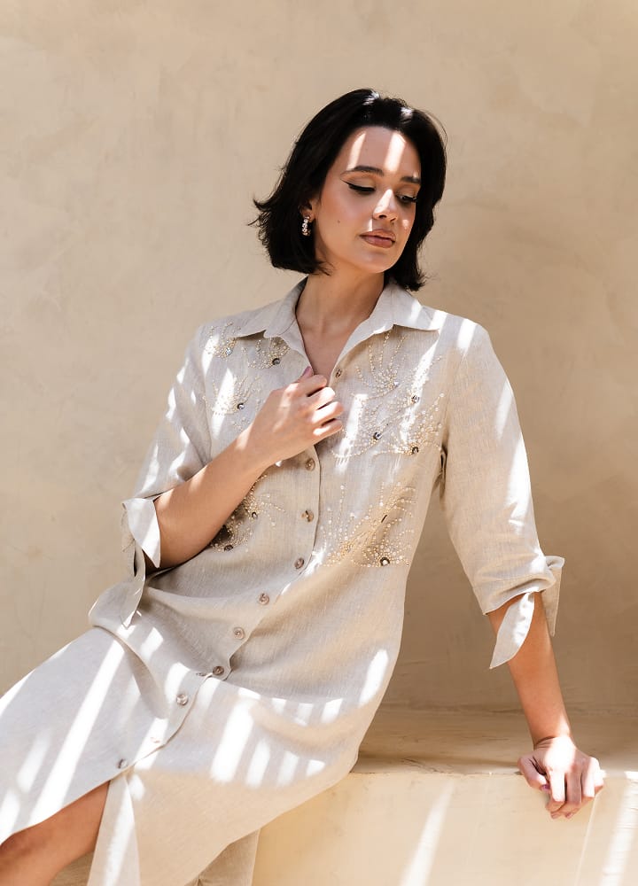 Combine com calça de linho/alfaiataria para um look refinado, ou jogue sobre jeans e top neutro para um contraste moderno.