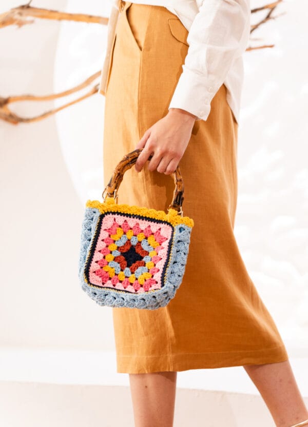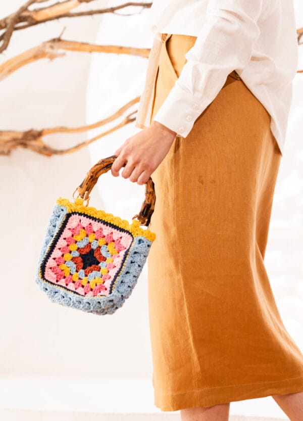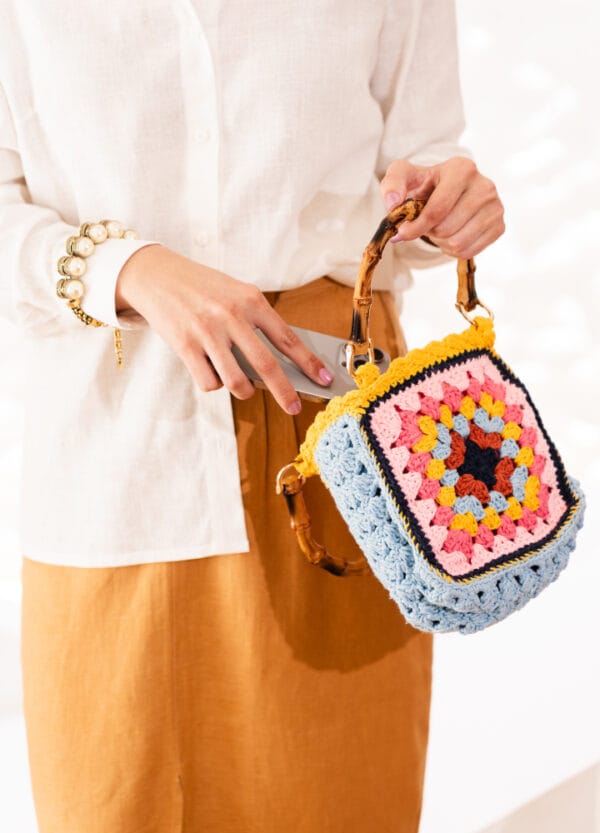 Bolsa Candy Pop — tiracolo em crochê com alças de bambu (tamanho M)