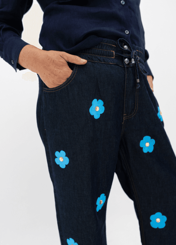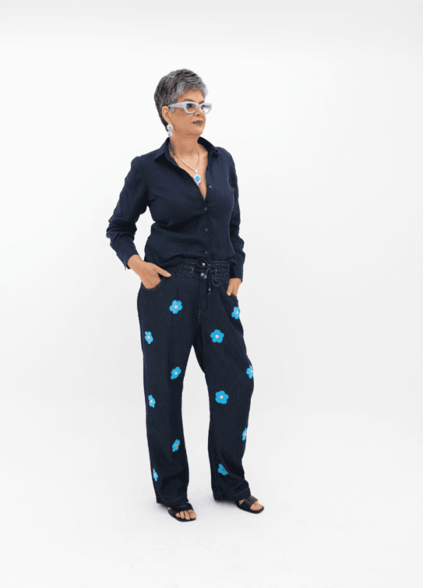 Por ser artesanal, pequenas variações de cor e acabamento tornam cada calça exclusiva.