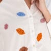 Camisa Kisses — 100% algodão, bordada à mão Autenticidade que brilha. A Camisa Kisses é confeccionada em 100% algodão e inteiramente bordada à mão com vidrilhos, criando textura e luminosidade únicos. Perfeita para compor looks do dia à noite com leveza. Bordado: manual com vidrilhos (peça artesanal) Bordado na frente e atrás Cores: off (foto) Tamanhos: P e M Tamanho exibido: a modelo veste P Tabela de Medidas Tamanho P Costa: 38 Busto: 90–94 cm Cintura: 74–78 cm Quadril: 96–100 cm Comprimento do corpo: 44 cm Tamanho M Costa: 40 Busto: 102 cm Cintura: 85 cm Quadril: 108 cm Comprimento do corpo: 44 cm Cuidados Lavar à mão em água fria, usar sabão neutro, secar à sombra. Não alvejar. Passar pelo avesso, protegendo os bordados.