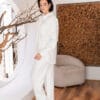 Elegante e sofisticada, tem acabamento perolado em bordado à mão, resultando numa peça preciosa e única. Versátil, transita do dia à noite com facilidade — uma verdadeira joia no closet.