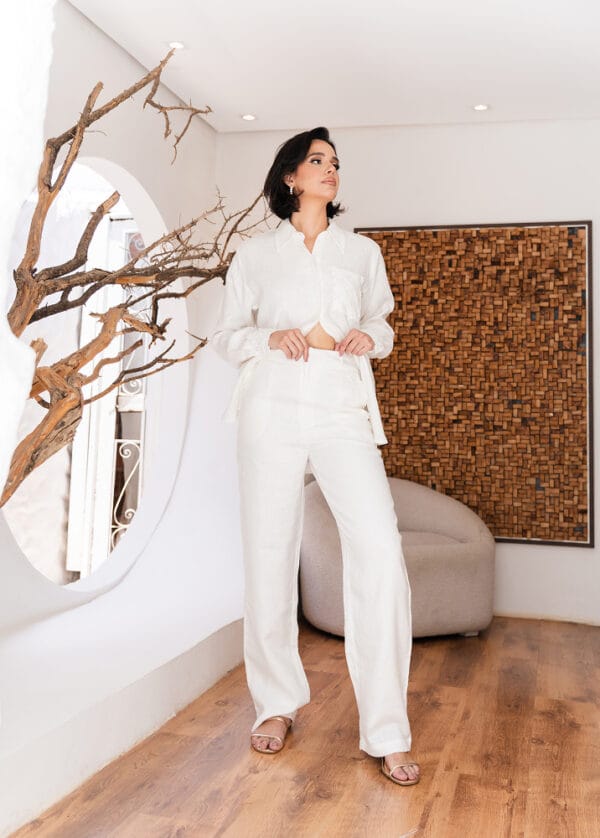 Combine com a Camisa Pérolas para um conjunto refinado, ou com camisas de linho/ seda para um look clean e moderno.