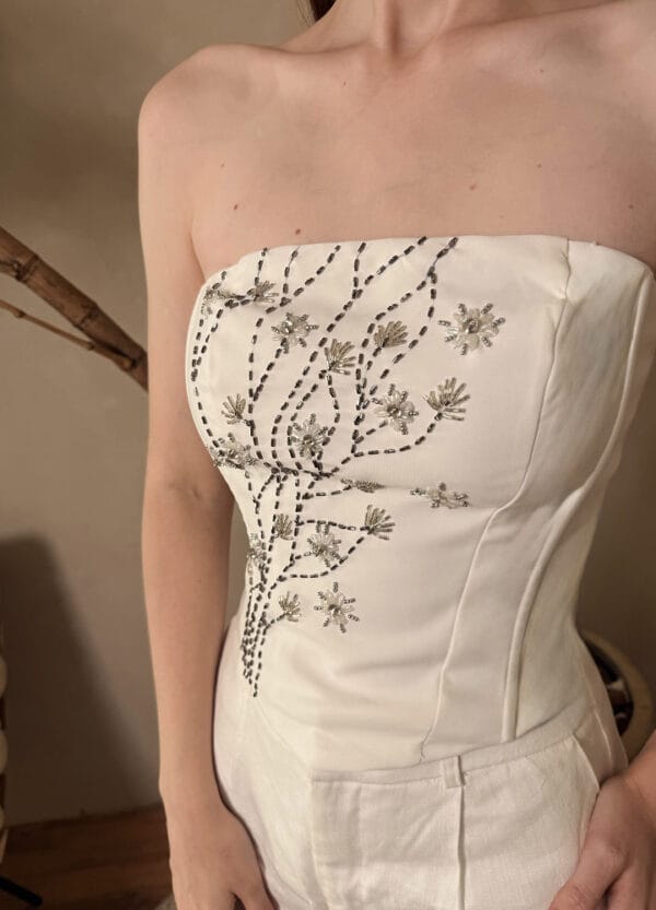 O Corset Sonhar é uma peça que une delicadeza e poder. Criado para valorizar a silhueta feminina com elegância, seu design celebra o equilíbrio entre arte e estrutura.