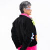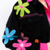 Moderna, autêntica e cheia de charme artesanal. A jaqueta preta recebe aplicações de flores em crochê coloridas, criando um ponto de cor vibrante que transforma qualquer produção — do jeans básico ao vestido midi.