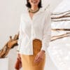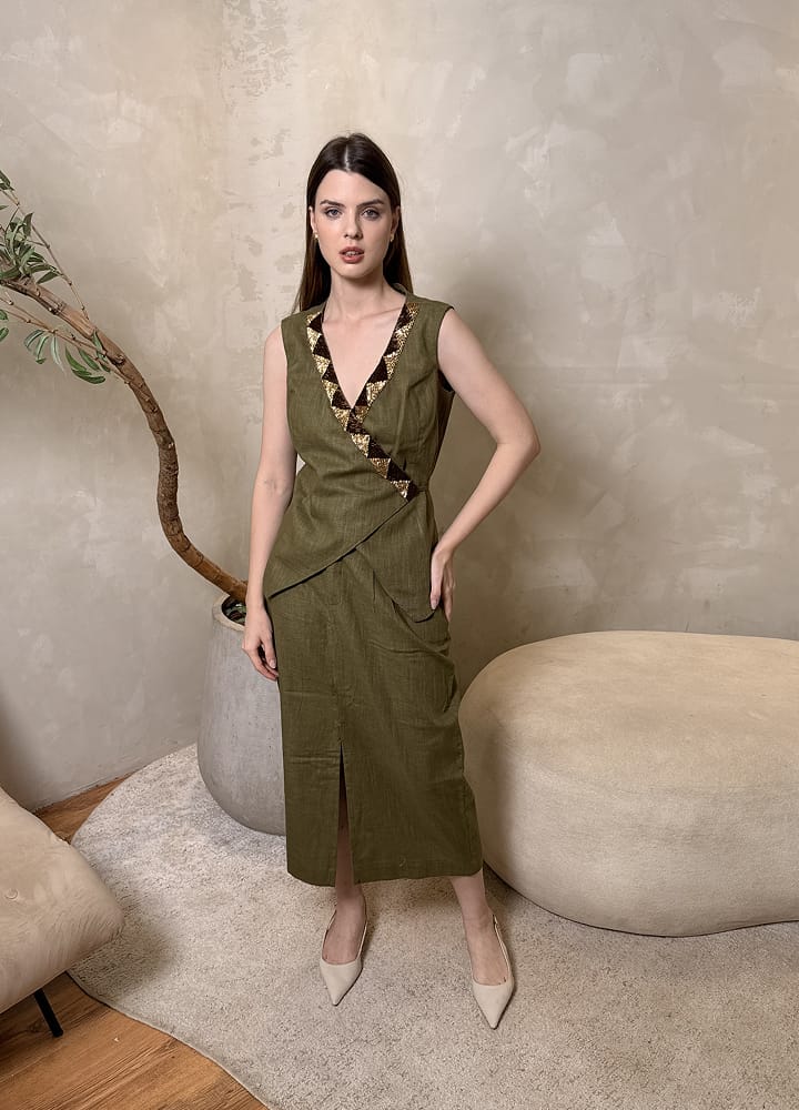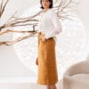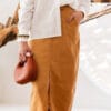 Moderna e ousada, a Saia DOT une modelagem lápis com comprimento midi e fenda frontal, criando movimento e estilo sem perder a elegância. O marrom terroso é neutro-chic, fácil de combinar e transmite serenidade e requinte — perfeita para looks profissionais ou noturnos.