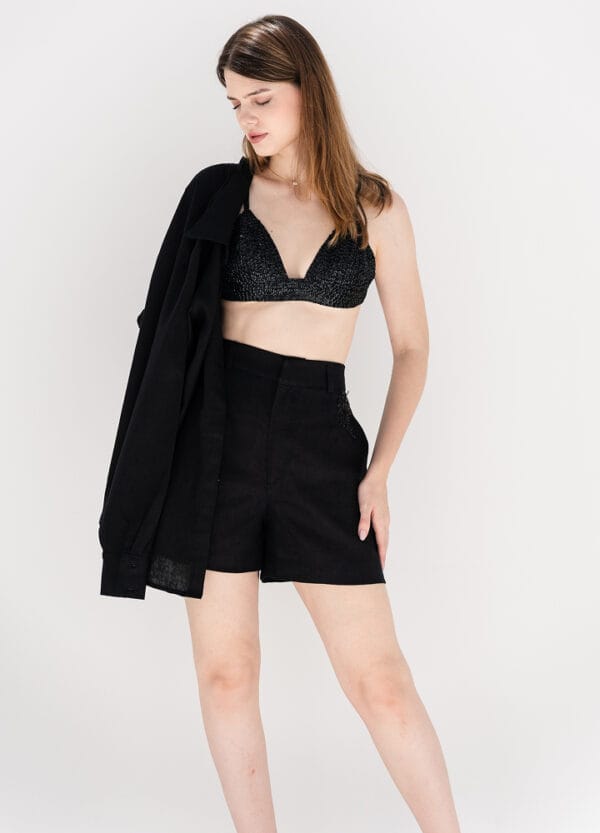 Glamour e sofisticação em dose certa. O Top Shine traz lantejoulas e miçangas com brilho furta-cor que hipnotiza ao movimento. De alça fina, é perfeito para ocasiões especiais — elegante, moderno e cheio de personalidade.